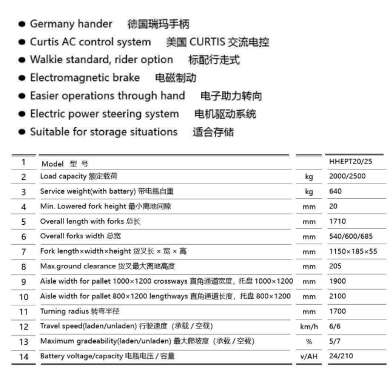 | Climbing Capacity | ≥5% with Rated Load |