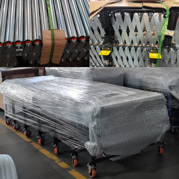 The telescopic roller conveyor has a regular telescopic length of 3-15 meters (customizable up to 20m+), with a variable-frequency adjustable conveying speed of 0.5-1.5m/s. It is equipped with carbon steel/stainless steel rollers (diameter 50-89mm) and has a load-bearing capacity of 50-500kg/m (heavy-duty models customizable up to 1000kg/m+). Driven by electric rollers or geared motors (mute ≤65dB), it supports manual/PLC control (compatible with automated systems). Its structure includes roller brackets (anti-slip optional), telescopic guides (gear rack/chain drive), and motor reducers (some support manual telescoping when powered off). Optional accessories include universal wheels, guardrails, and photoelectric sensors, making it suitable for multiple scenarios.