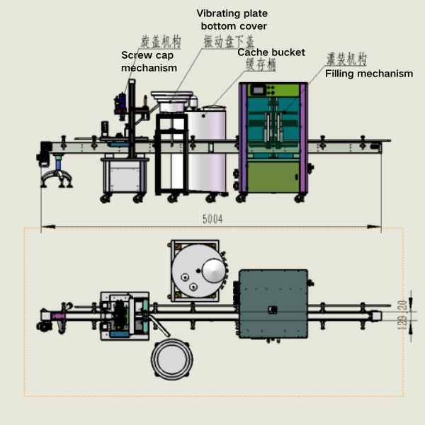 2、Capping Preparation: Filled bottles move to the capping station. A vibratory bowl arranges caps, which are picked (by suction cup/claw) and placed on bottle mouths. Sensors ensure accurate capping.