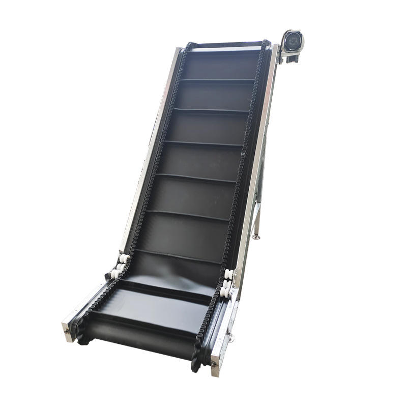The black PVC elevated belt conveyor is a professional vertical conveying equipment for industrial production, with industrial-grade black PVC belt and high-strength frame as the core structure. It is specially optimized for elevation conveying, realizing stable and non-slip lifting of various materials, supporting multi-angle elevation and flexible parameter customization. The equipment has the characteristics of stable operation, high conveying efficiency and simple maintenance, can be seamlessly connected with upstream and downstream production equipment, effectively solving the vertical conveying demand of production lines, reducing manual handling, and is a practical conveying equipment for optimizing industrial production processes.