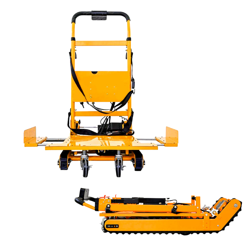 The electric stair climber is designed for heavy-load transportation in elevator-free scenarios. With electric track drive and triangular stable structure as the core, it replaces manual labor to achieve efficient and safe transportation. The anti-slip track enhances grip, while intelligent angle calibration and dual safety protection prevent tipping, ensuring the safety of personnel and cargo. The foldable body facilitates storage, and universal casters enable seamless switching between flat movement and stair climbing. The lithium battery with fast charge and long endurance meets all-day operation needs, and the LCD touch panel ensures easy operation. The lightweight aluminum alloy body balances load capacity and portability, with modular design for easy maintenance. Widely used in logistics, home appliances, construction and other industries, it is the preferred choice for transportation upgrading in elevator-free scenarios.