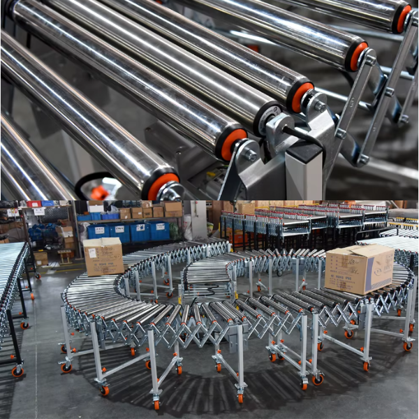 The telescopic roller conveyor has a regular telescopic length of 3-15 meters (customizable up to 20m+), with a variable-frequency adjustable conveying speed of 0.5-1.5m/s. It is equipped with carbon steel/stainless steel rollers (diameter 50-89mm) and has a load-bearing capacity of 50-500kg/m (heavy-duty models customizable up to 1000kg/m+). Driven by electric rollers or geared motors (mute ≤65dB), it supports manual/PLC control (compatible with automated systems). Its structure includes roller brackets (anti-slip optional), telescopic guides (gear rack/chain drive), and motor reducers (some support manual telescoping when powered off). Optional accessories include universal wheels, guardrails, and photoelectric sensors, making it suitable for multiple scenarios.