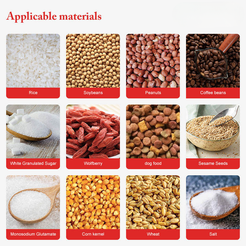 With the advantages of accurate granule metering, food safety compliance and simple operation, this product is specially designed for granular food packaging such as coffee beans and spices, and is widely used in small and medium-sized food processing and production scenarios, as follows:Coffee Bean Processing & Sales: Suitable for small and medium-sized coffee roasteries and coffee bean sellers, realizing semi-automatic packaging of roasted coffee beans, tight sealing to keep fresh and ensure coffee flavor.Spice Production & Packaging: Applicable to spice processing enterprises and condiment stores, packaging various single or mixed spices, accurate metering to meet the standard of fixed weight packaging.Snack Granule Small Batch Packaging: For small batch packaging of melon seeds, peanuts, nuts and other granular snacks, flexible adjustment of metering range to match different packaging specifications.Small Food Processing Workshop: Compact structure, no need for large space, suitable for small food processing workshops with limited production area, realizing multi-variety granular food packaging with one machine.Bulk Food Retail & Distribution: Adapt to the fixed weight packaging needs of bulk coffee beans, spices and granular food in supermarkets and wholesale markets, improving packaging efficiency and standardization.Food Processing Startup Enterprises: Low equipment investment cost, simple operation and low maintenance cost, matching the initial production and packaging needs of food processing startups, reducing operation pressure.